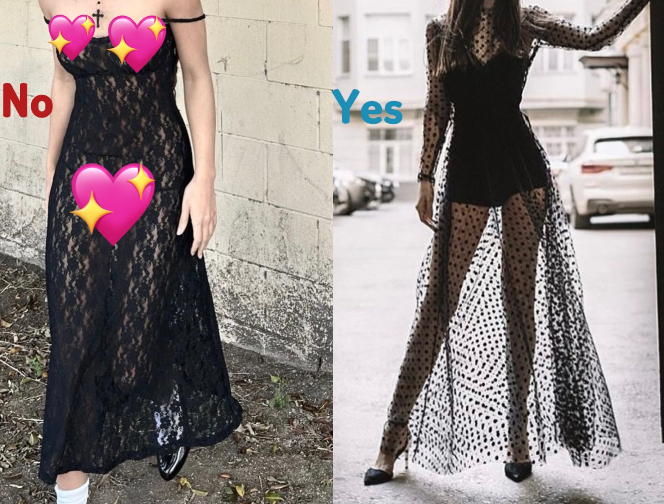 I worked at Victoria’s Secret for 7 years and we would often give guidance for blending lingerie with clothes. The other day I was chatting with a girlfriend who we had became friends working at Victoria’s Secret and our conversation went to the transparent fashion trend. To me transparent fashion isn’t a trend but a style. Just as there is goth, preppy, and casual there is transparent or see through clothing also exists as a style. And the reason why I say that is that there is a “spirit” to the women that wear that style naturally – usually it’s light Bombshell Tease women (usually the analogy of women as perfumes) who are naturally drown to that style. On the other hand though it’s also become a trend but what my friend and I realized when we were talking is that there aren’t any guidelines to the trend. I know that fashion doesn’t have rules but the only problem is that if you’re wearing a see through dress there are definitely guidelines from it looking “Classy” vs. “Trashy.”